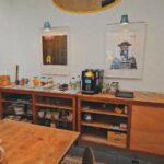 La salle du petit déj est prête. Les premiers clients sont déjà passés un peu plus tôt, donc le buffet est plus léger, mais on voit l’essentiel: le pain, le café, les bocaux, la grande table, les tapis, les lampes, et la lumière qui tombe de la verrière. On avance doucement, on écoute la maison respirer.