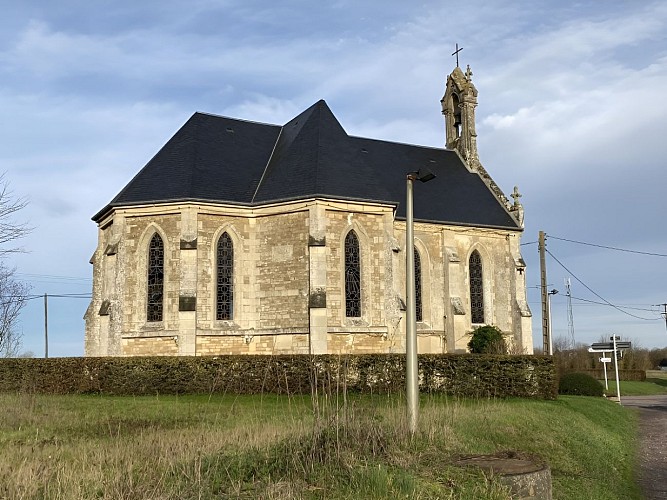 Au croisement d’une route de campagne se distingue une belle petite chapelle construite au XIXème siècle à l'emplacement d'une statue de la Vierge Marie.