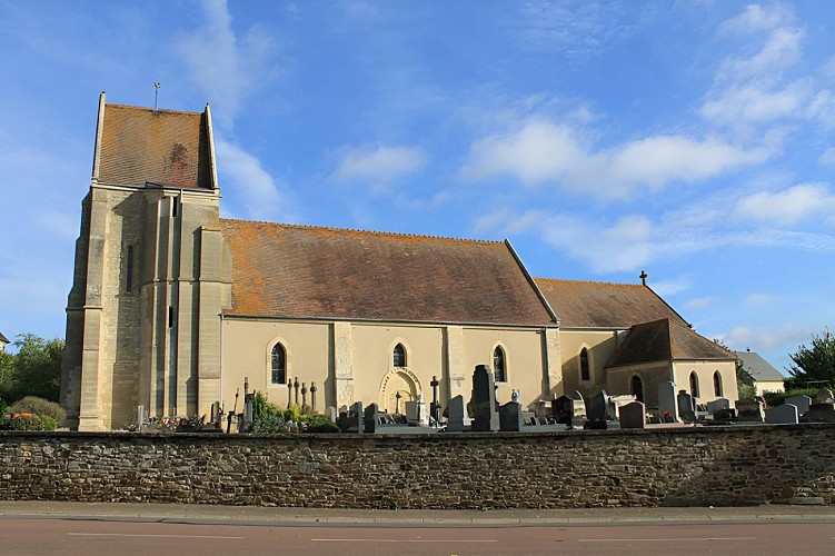 La nef de l’église semble dater de la première moitié du XIIIème siècle. Le chœur est peut-être de la même époque, à moins qu’il ne date du XIVème siècle comme la tour couverte d’un toit en bâtière. L’ensemble de l’église a beaucoup souffert lors des combats de 1944, et une partie a dû être reconstruite.