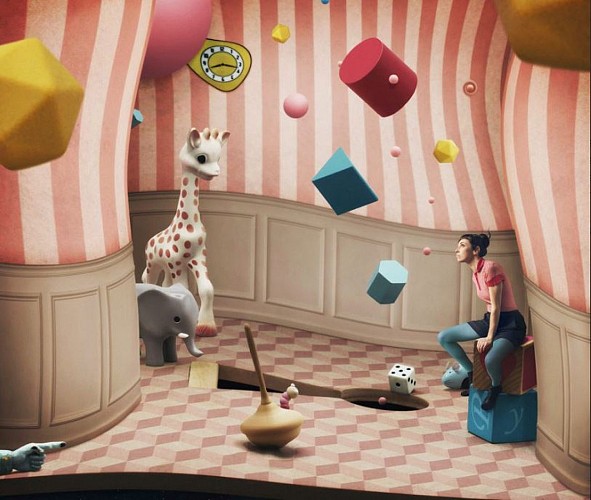 Photographe et graphiste, Laurence Guennec nous projette avec Réminiscence dans un monde enfantin, étrange et merveilleux. La photographie est, à l’instar des pigments pour le peintre, sa base de travail. Elle crée ses décors en modelant le sable, en combinant des jouets ou en pliant du papier. Puis, elle multiplie les prises de vues de chaque objet qu’elle découpe, détourne et as- semble sous Photoshop, logiciel couteau suisse.