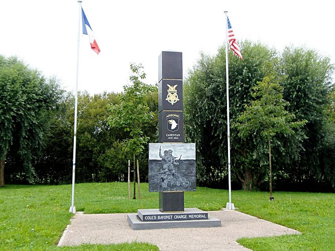 Le Mémorial COLE’s Bayonet Charge, inauguré en 2014 pour le 70ᵉ anniversaire du Débarquement, rend hommage à l’un des actes de bravoure les plus emblématiques de la bataille de Carentan : la charge à la baïonnette menée par le Lieutenant-Colonel Robert Cole et ses hommes du 3rd Bataillon du 502nd PIR. Cet événement s’inscrit dans le cadre des combats acharnés qui opposent les troupes américaines aux parachutistes allemands retranchés autour de la ville, un point stratégique pour la jonction des forces alliées débarquées à Utah Beach et Omaha Beach.