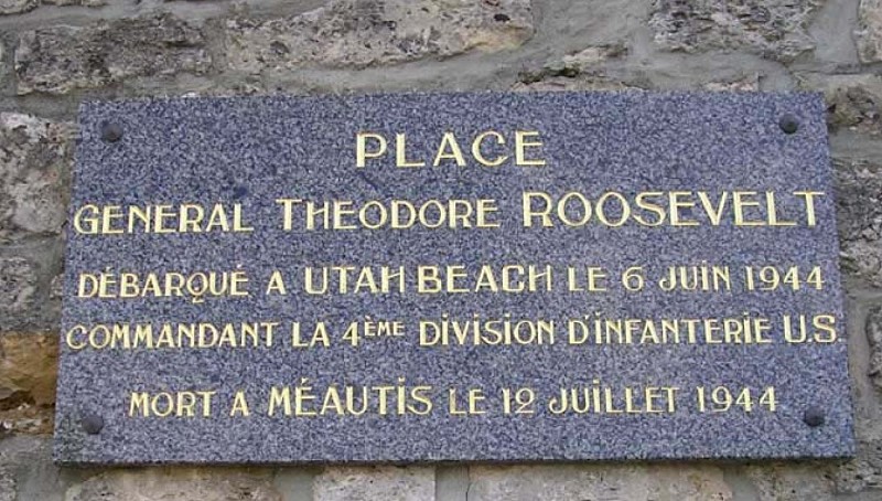 La plaque dédiée au Brigadier Général Théodore Roosevelt JR se situe sur le mur de la maison au 4 rue l’église, pour plus de précision à ces coordonnés suivantes : 49.27895973166624, -1.3006946309835268.