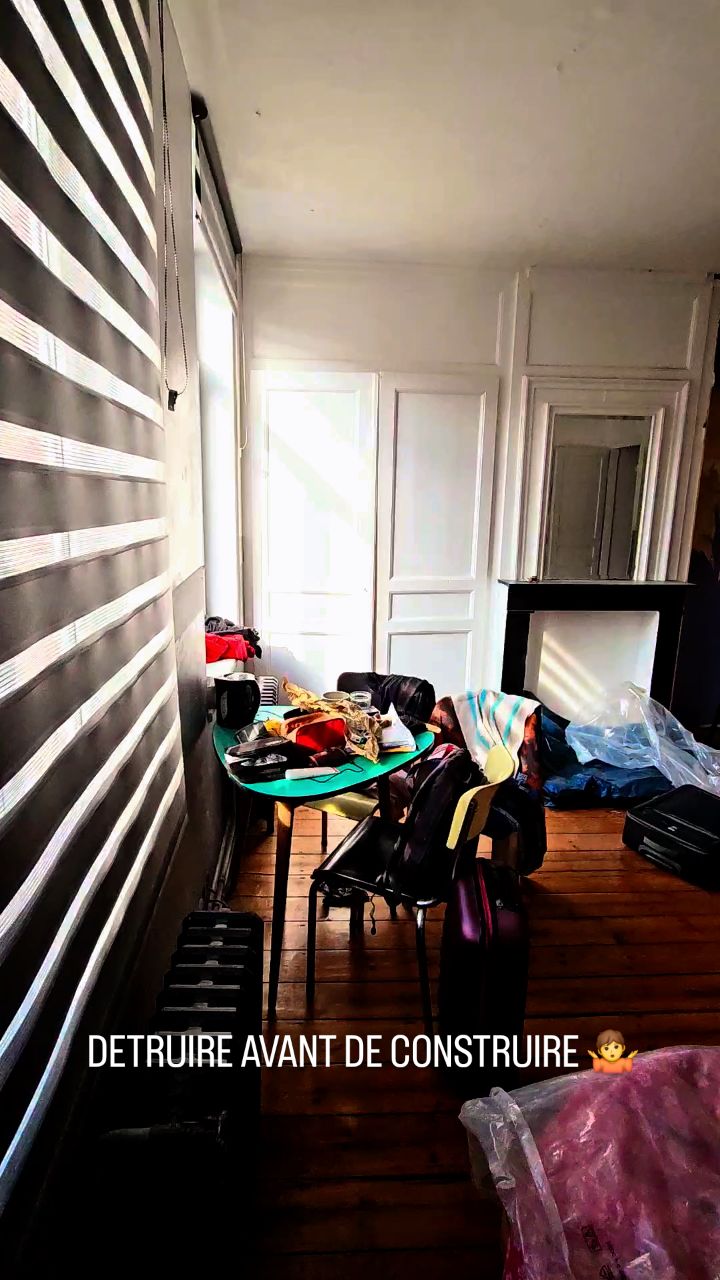 On est en plein coeur du chantier : poussière, gravats, démontage… c’est l’étape qu’on aime moins mais qui est indispensable. C’est un sacré travail, des allers-retours avec les artisans, et beaucoup de décisions pour imaginer le confort qu’on veut offrir dans chaque logement et chambre.
